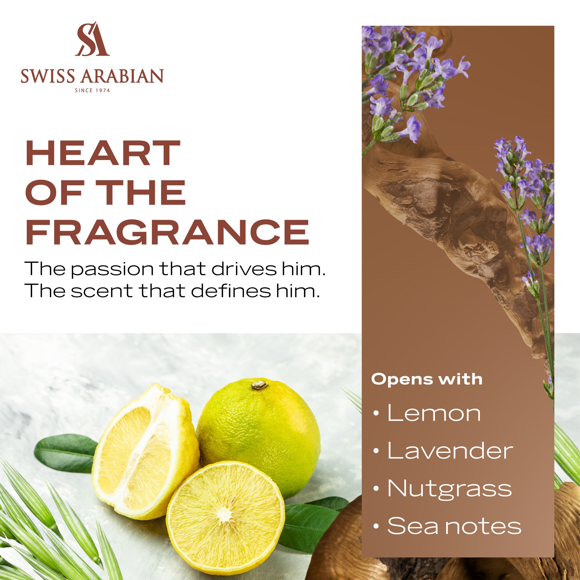 Shaghaf is an oriental woody scent for men, inspired by the passion and drive that thrives within him. When he chooses Shaghaf, he knows it’s the fragrance that embodies who he is. Shaghaf opens with lavender and lemon, giving a steadfast and traditional opening. These uplifting, shower fresh notes blend seamlessly into a magnificent chypre heart, replete with oakmoss, evoking a sylvan idyll under a canopy of trees. A contrast of aquatic notes conjures the swish of the ocean, as a sunset of amber and patchouli embraces the horizons with a warm glow. Shaghaf is a fragrance for men and is perfect for cooler months. The passion that drives him. The scent that defines him.